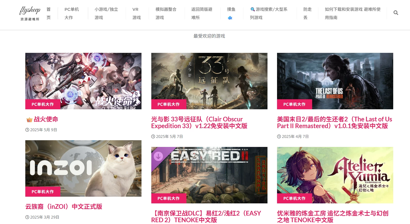 flysheep资源避难所一个免费的二次元风格下载站 收录steam epic 单机资源 switch游戏 ChatGPT